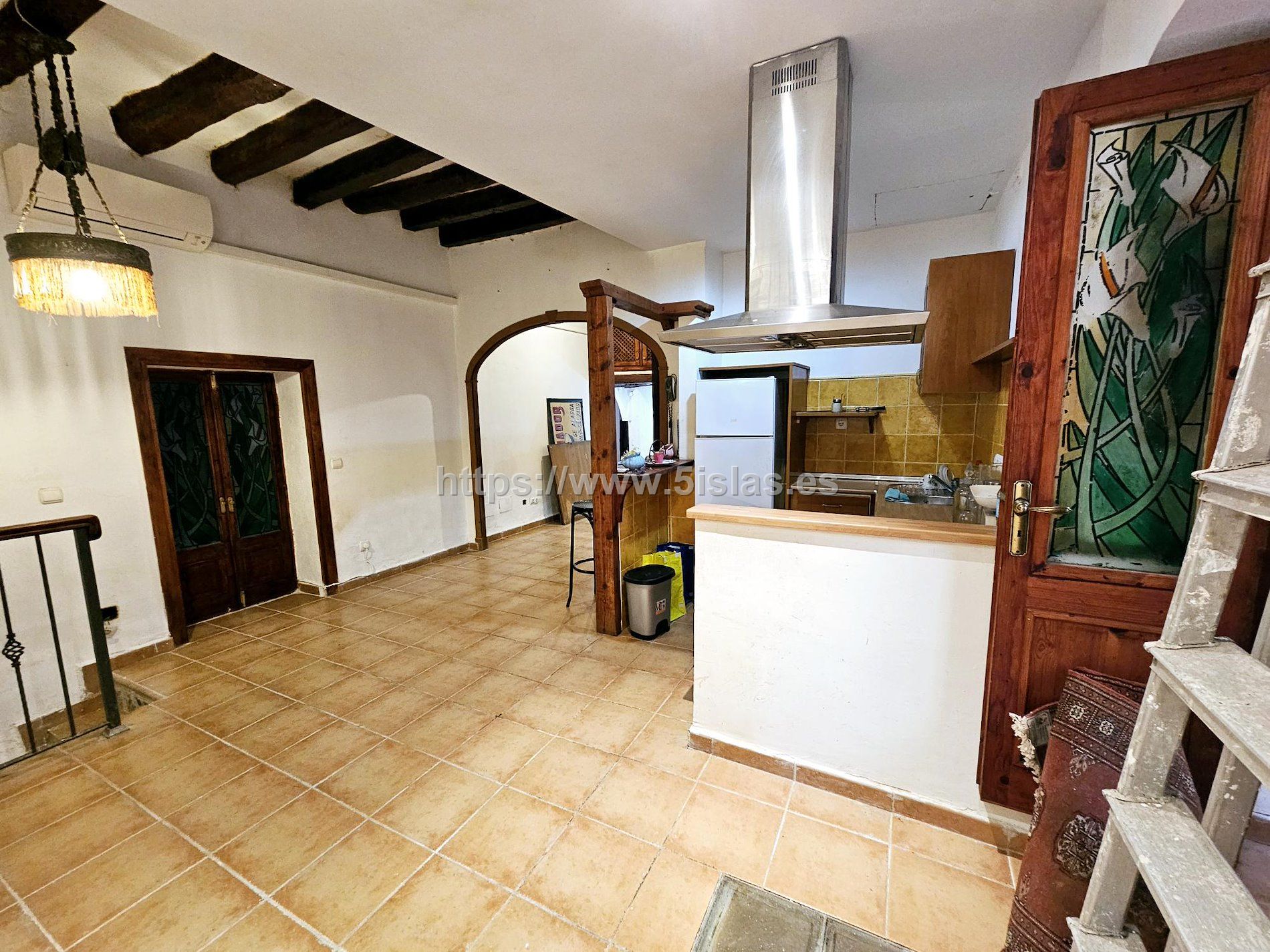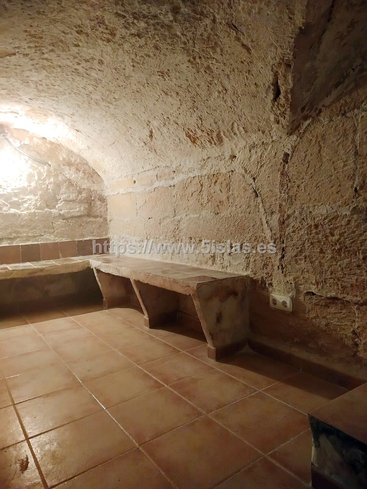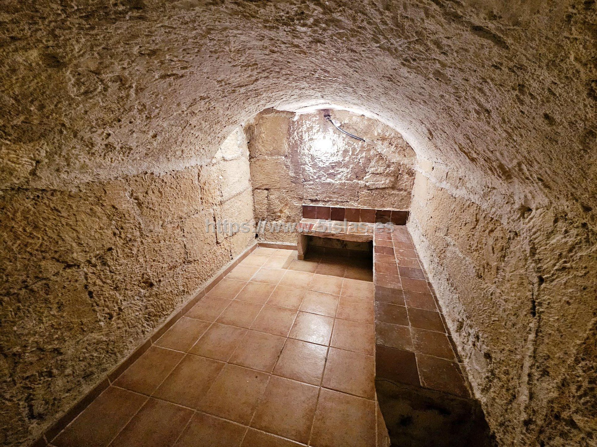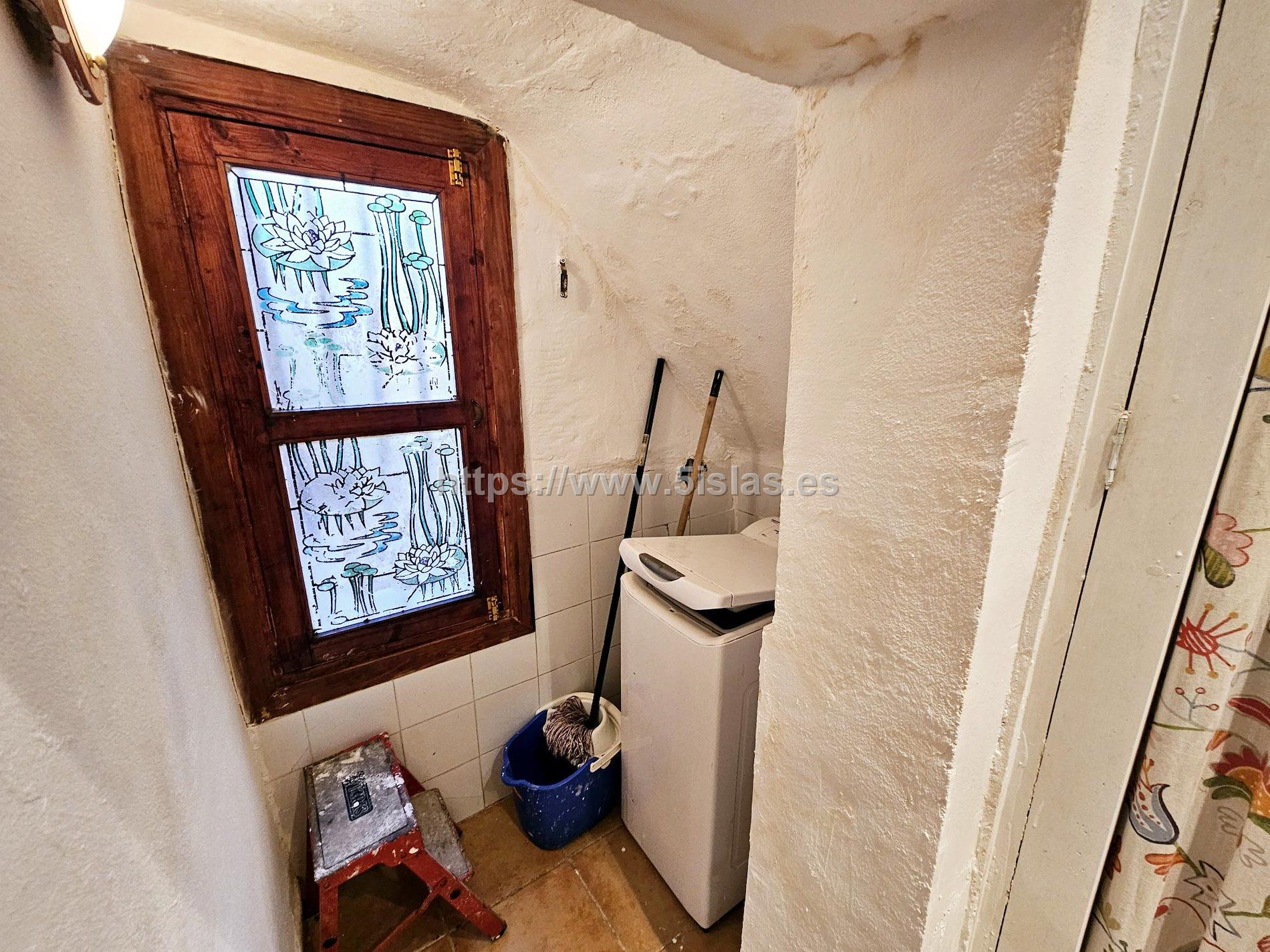 A continuación por un pasillo hay un amplio baño con plato de ducha y otro salón-comedor con cocina abierta con despensa y una pequeña coladuría con salida a una patio que da a la calle de detrás de la vivienda, debajo de esta estancia bajamos por unas escaleras y encontramos una original bodega o celler de 8m2 con claraboya.