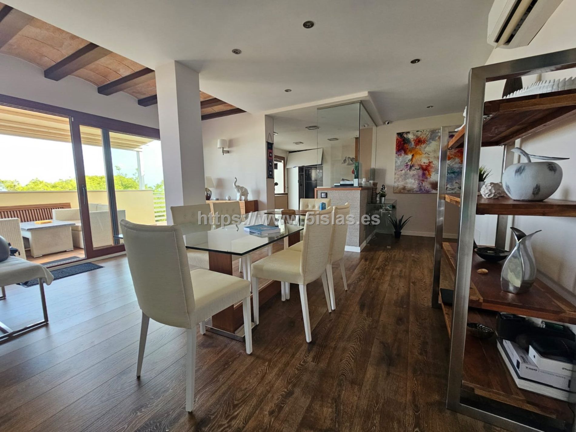 Dispone de un amplio salón comedor a dos alturas, con chimenea, la cocina es vistas con mucha luminosidad con salida a una terraza de unos 110m2 y con un porche de 20m2 con vistas inmejorables al mar, para poder disfrutar prácticamente todo el año.