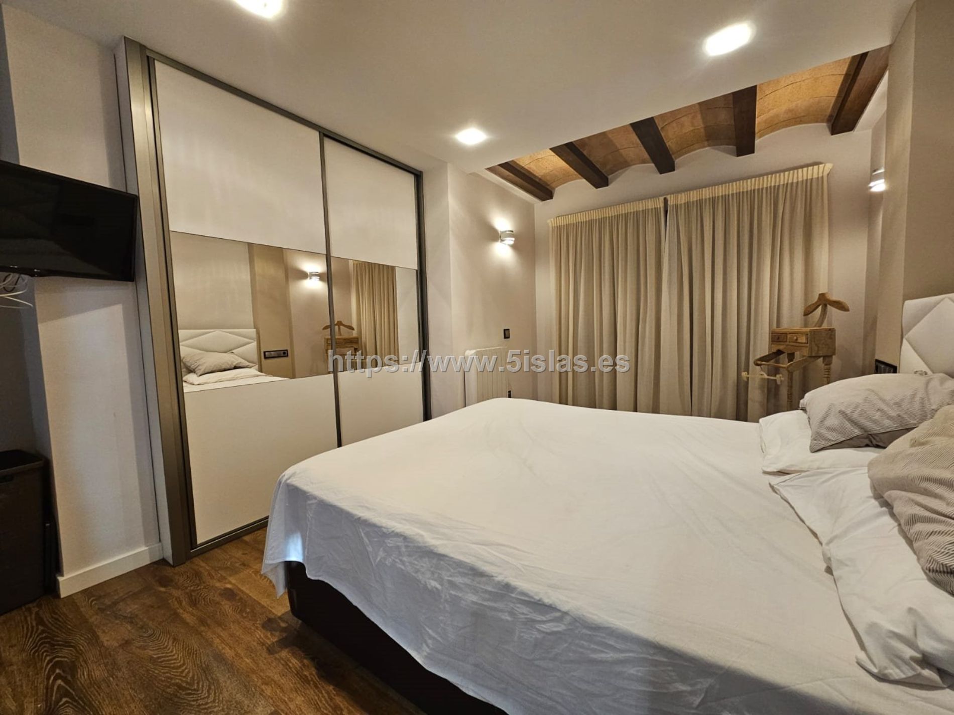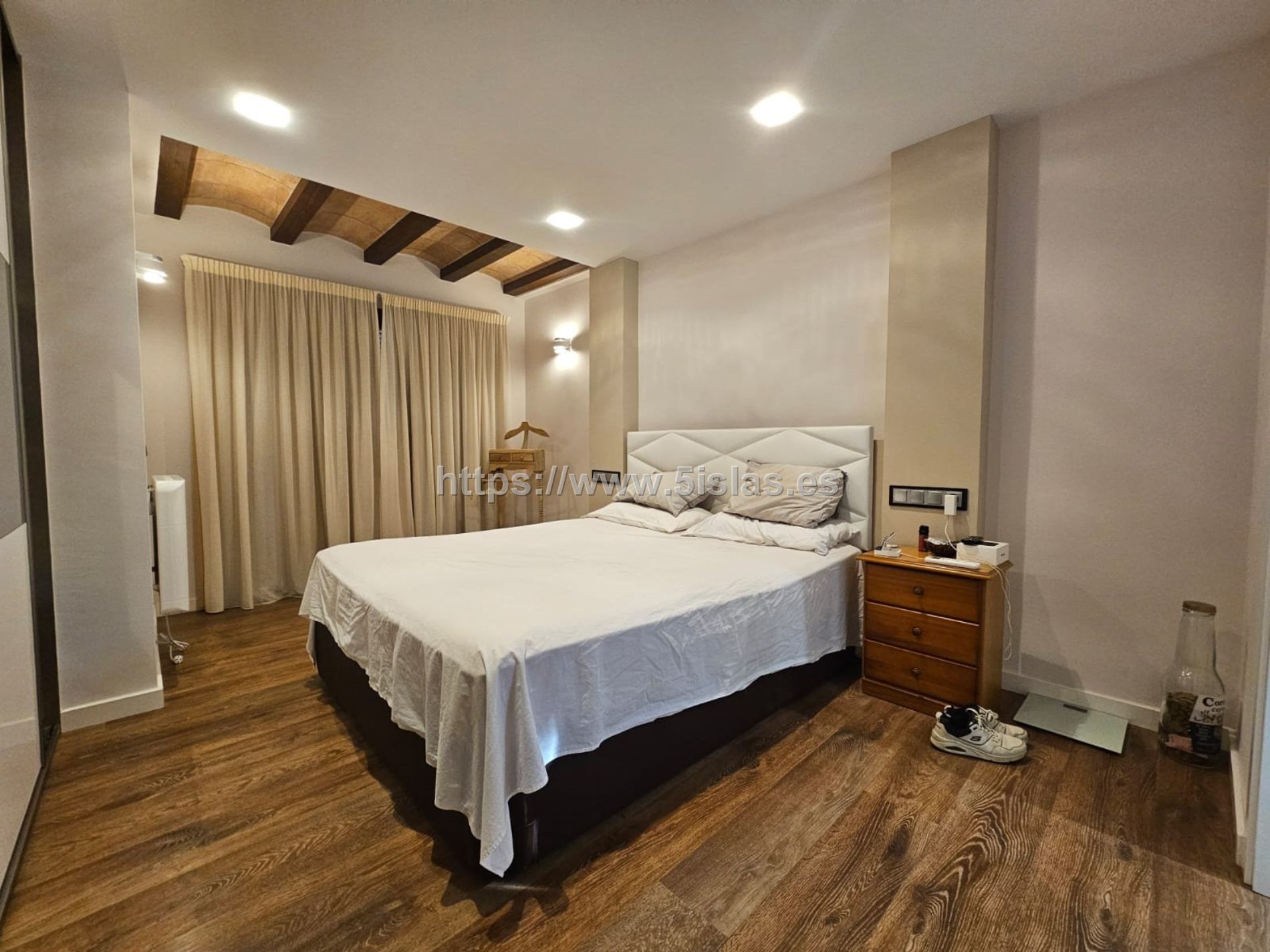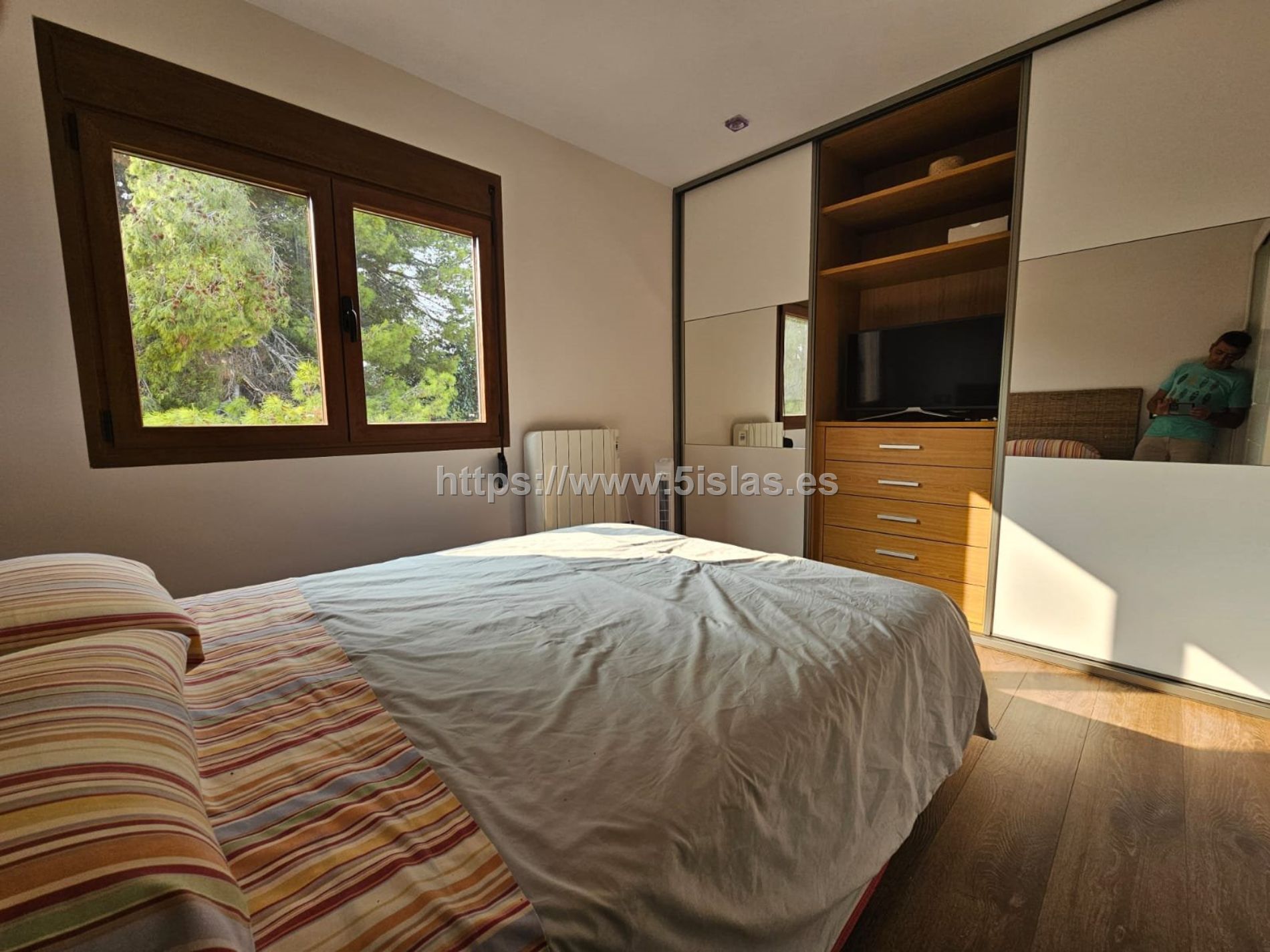Aire acondicionado en el salón, radiadores eléctricos en los dormitorios.